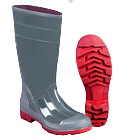 Giày ủng chữa cháy Mẫu số 4: Ủng có màu xám, đế màu đỏ. Ủng cổ ca, thân đứng, đế đúc liền 5 cm, có vân hình gân cưa ma sát và chống thấm nước. Mũi ủng tròn có lớp kim loại để bảo vệ mũi chân. Bên trong ủng có lớp vải dùng để chống trượt bàn chân, bám dính thành ủng. Cổ ủng, thành ủng, mũi ủng, các gờ của ủng có gân viền xung quanh. Ủng được làm từ PVC / Cao su nhân tạo. |