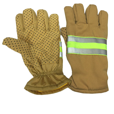 Găng tay chữa cháy Mẫu số 5: Găng tai dài, cổ kín các ngón tay, từ trước ra sau cổ tay có băng thun co giãn, bên trong giăng tay có phủ chất chống trượt. Găng tay được làm bằng chất liệu Polyeste / Cotton (65 / 35 +-3). Màu vàng bảng màu Pantone 15-1132 TPX |